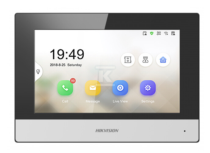 Внутрішня станція DS-KH6320-WTE1 – це просунутий пристрій з кольоровим 7-дюймовим сенсорним екраном з роздільною здатністю 1024x600, який є серцем інтелектуальної системи відеодомофонії Hikvision. Він забезпечує не тільки комфортну комунікацію з відвідувачами, але й розширені функції моніторингу та безпеки. Це ідеальне рішення як для приватних будинків, так і для багатоквартирних будинків, а також для офісів і фірм.