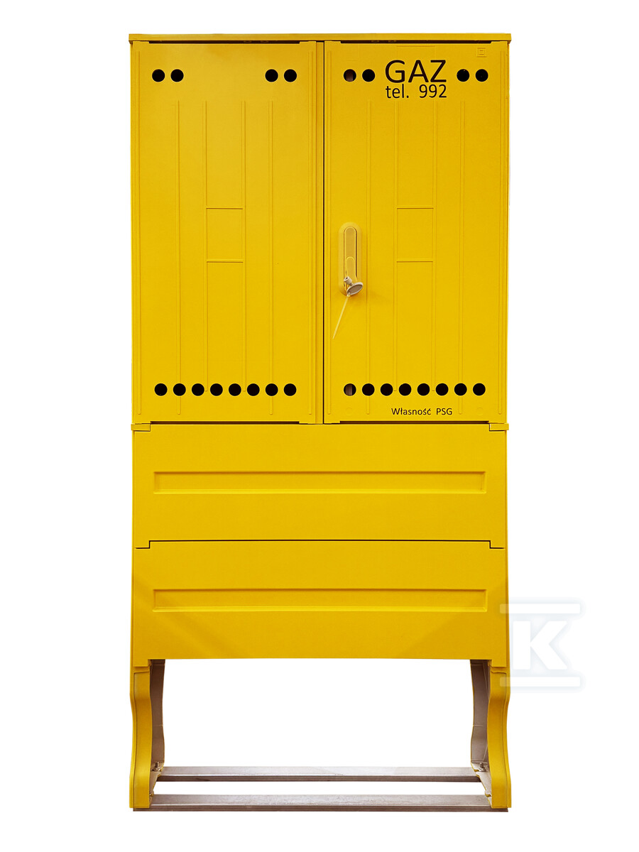 Шафа газова з пластику, тип SSTG, шир. x вис. [см]: 80x84 + фундамент, моноз'єднання на 2 лічильники газу у вертикальному положенні з клапаном 5/4" на редуктор, виконання: стандарт PSG, з композиту SMC, лак стійкий до УФ, к.жовтий RAL1021, стояча. IOBG-91040-07-528-H