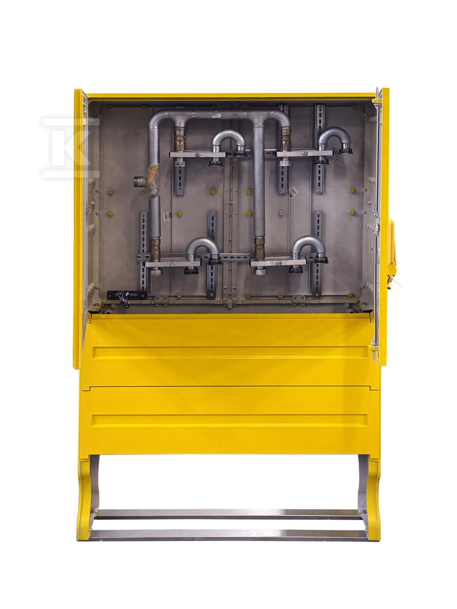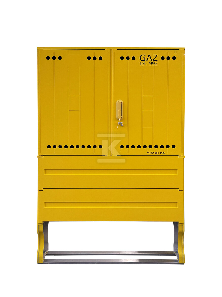 Шафа газова з полімеру, тип SSTG, шир. x вис. [см]: 106x84 + фундамент, моноз'єднання на 4 лічильники газу у вертикальному положенні, 2+2, виконання: стандарт PSG, з композиту SMC, лак стійкий до УФ, к.жовтий RAL1021, стояча IOBG-91044-07-528-H