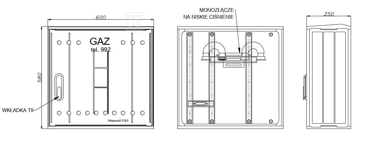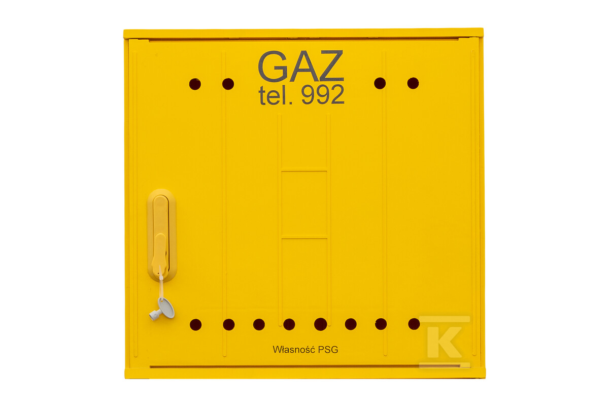 Відсутність оглядового вікна на дверцятах підвищує безпеку та ускладнює несанкціонований доступ до внутрішньої частини шафи. Універсальний замок з металу з гальванічним покриттям захищає від втручання сторонніх осіб, а ключ є елементом комплектації шафи. Вентиляція відбувається природним шляхом через повітрозабірні та випускні отвори загальною площею не менше 2% перерізу корпусу. На дверцятах розміщені міцні написи: “GAZ” та “Власність PSG”.