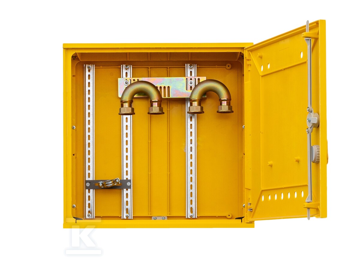 Газова шафа SSTG призначена для настінного монтажу, що полегшує її встановлення в різних місцях. Вона оснащена моноз'єднанням для низького тиску, яке спрощує та прискорює монтаж лічильника газу – усуває монтажні напруження, забезпечує відповідну відстань між осями та зменшує кількість різьбових з'єднань. Рама та моноз'єднання виготовлені з матеріалів, покритих гальванічним способом, що гарантує захист від корозії.