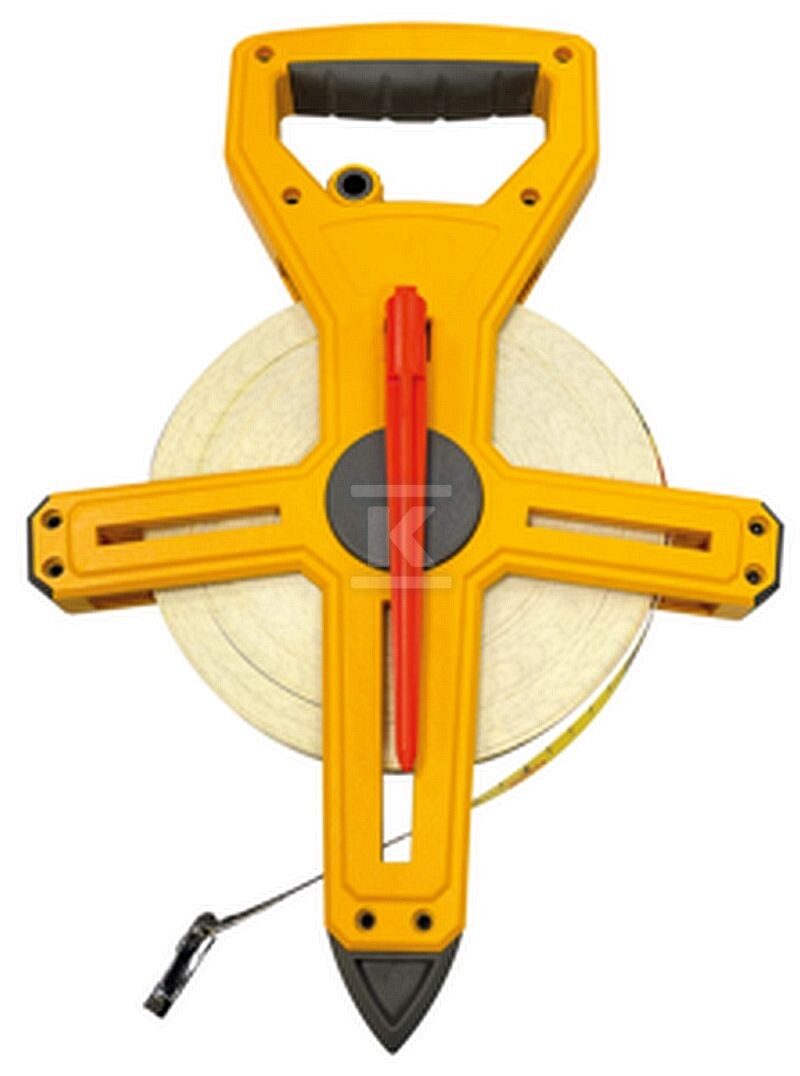 Подвійна армована скловолоконна стрічка шириною 13 мм і довжиною 50 м. На поясі є міліметрова шкала білого кольору та сантиметрова шкала жовтого кольору. На кінці ремінця є металеве кільце та складний кінцевий гачок. Рулетка має складаний шатун. Продукція професійної якості має гарантію 25 років. Допуск відповідає стандарту точності EU II.