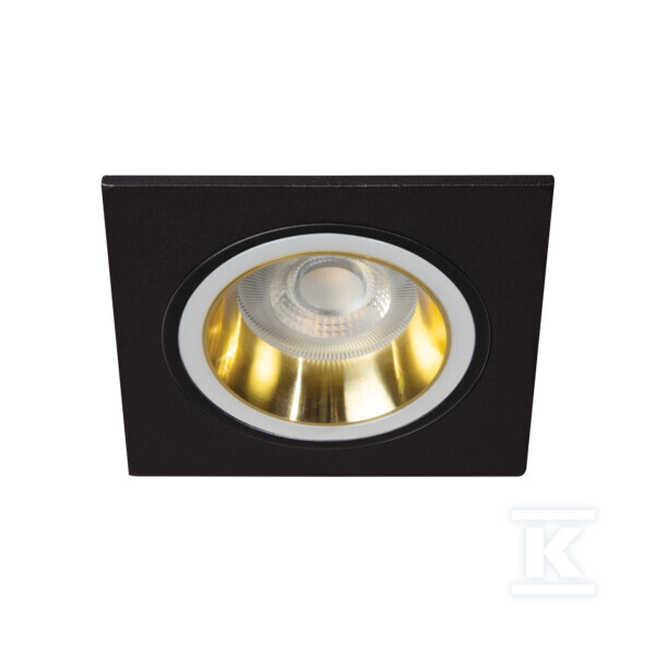 Виготовлене з міцного сплаву алюмінію, кільце характеризується квадратною формою з розмірами 92 x 92 мм та висотою 25 мм. Монтажний отвір діаметром Ø77 мм полегшує швидкий та точний монтаж. Колірна гама золотий / чорний додає елегантності та дозволяє підібрати кільце до обраного дизайну інтер'єру. Ступінь IP20 означає захист від дотику пальцем та від твердих тіл більших ніж 12,5 мм – тому воно підходить для використання в сухих внутрішніх приміщеннях. Максимальна потужність лампочки становить 10W при номінальній напрузі 220-240V AC та 12V AC/DC. Діапазон температури навколишнього середовища, в якому його можна безпечно використовувати, становить 5°C до 25°C. Кільце не призначене для покриття термоізоляційними матеріалами. Гарантія виробника становить 2 роки.