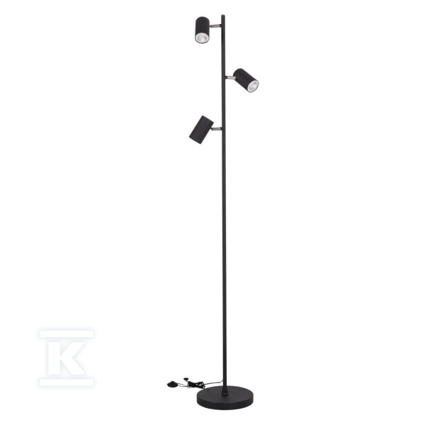 EVALO FL розроблена з урахуванням універсального застосування. Її витончений силует і чорний колір пасують до більшості інтер'єрів. Лампа оснащена трьома точками світла з патронами GU10, що дає можливість вибору лампочок різної потужності та кольору світла (максимально 10W на точку). У комплекті не входять джерела світла, що дозволяє індивідуально підібрати їх до власних уподобань. Кабель живлення довжиною 1.8 метра, закінчений вилкою, полегшує підключення до мережі. Додатково, лампа має вимикач для зручного керування.