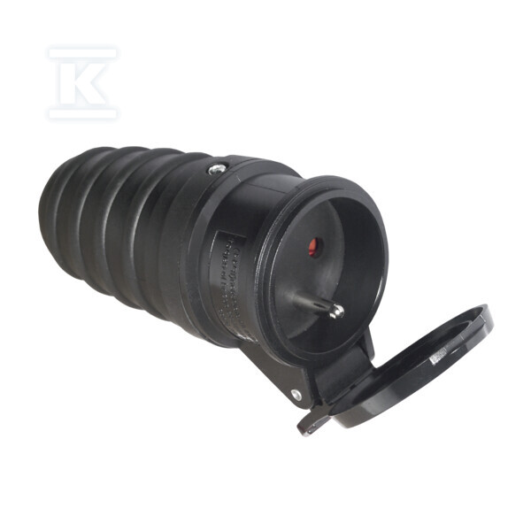 Гніздо призначене для використання з подовжувачами, що дозволяє безпечно підключати пристрої потужністю до 16A при напрузі 250V AC. Клас захисту I забезпечує додатковий захист від ураження електричним струмом. Тип заземлення E підвищує безпеку використання, а номінальна частота 50Hz забезпечує сумісність з більшістю електричних установок.