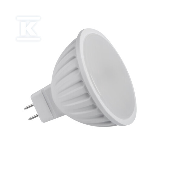 Лампа використовує світлодіоди SMD, що гарантує високу світлову ефективність на рівні 81 lm/W та тривалий термін служби – до 25 000 годин. Виготовлена з високоякісного пластику, є стійкою до механічних пошкоджень. Цоколь Gx5,3 дозволяє легко замінити її в існуючих світильниках MR16. Напруга живлення 12V AC/DC дає велику гнучкість у застосуванні – її можна живити як від блоків живлення AC, так і DC. Варто зазначити, що лампа не працює з димерами.