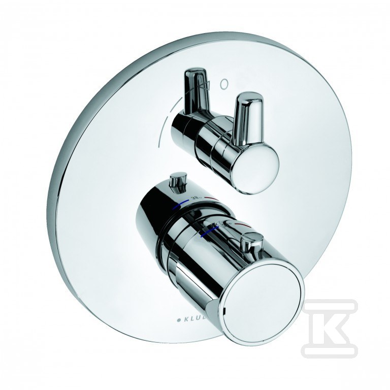 Змішувач вбудованого монтажу для душу з термостатом і запірною арматурою Kludi O-CEAN/ZENTA 388350545 Зовнішній елемент Клас потоку: BB Функціональний елемент з термостатичною головкою З запірною арматурою Блокування температури води на рівні 38°С ІІ акустична група Аксесуари для душу: немає Зливна пробка: немає Тип підключення: врізний
