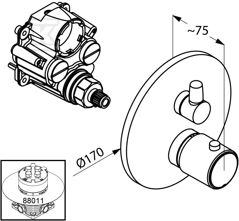O-CEAN/ZENTA Змішувач для душу вбудованого монтажу з терморегулятором із запірним клапаном Блокування температури води 38°C II акустична група хром. 388350545