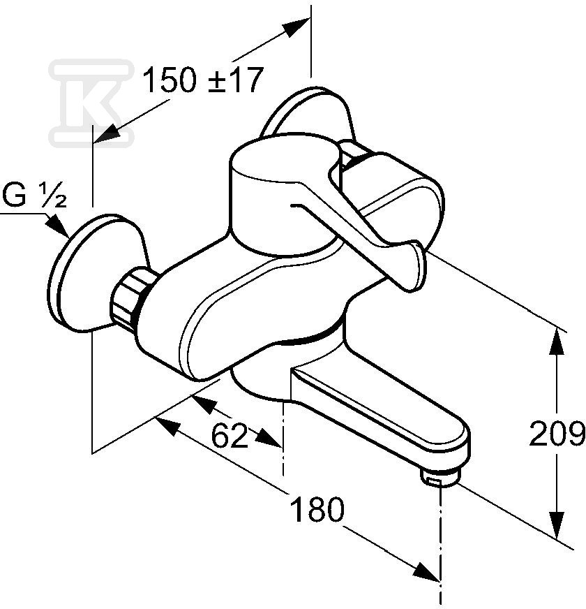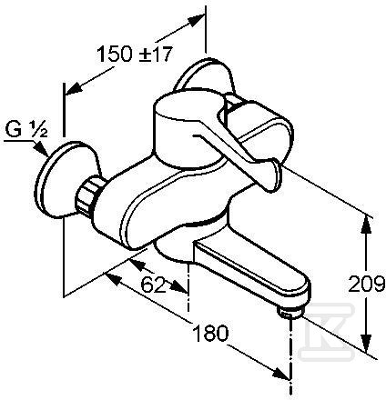 Змішувач настінний KLUDI MEDI CARE - виступ виливу 180мм 349220524