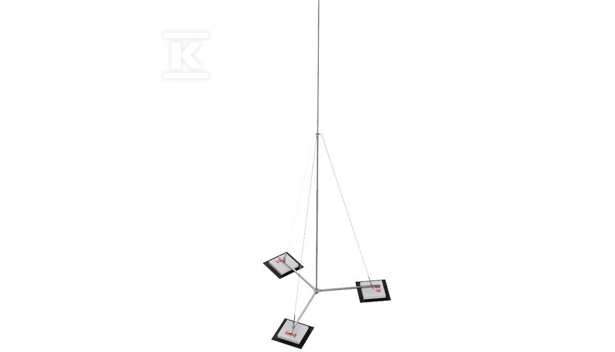 Конструкція щогли розроблена з урахуванням довговічності та ефективності. Виготовлений з алюмінію, він легкий, але водночас стійкий до корозії та атмосферних впливів. У комплекті є всі необхідні елементи для правильного монтажу та заземлення: сама щогла разом з триногою, з'єднувач для дроту, що полегшує підключення заземлюючого провідника, та три квадратні бетонні основи та шайби ПВХ, що забезпечують стабільність і безпечне закріплення в ґрунті.