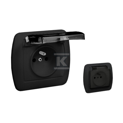 Розетка з заземленням, бризгозахищена IP44, прозора кришка, 16A, 250V~, гвинтові затискачі: чорний матовий, AKORD AGZ1BE/49A
