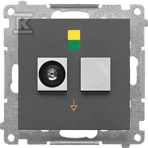 Ця розетка вирізняється графітним матовим покриттям (RAL 7012) і призначена для прихованого монтажу. Має швидкознімні з'єднувачі для швидкого монтажу, а ступінь захисту IP20 забезпечує захист від дотику до сторонніх тіл. Номінальний струм становить 16A при номінальній напрузі 250V. Виготовлена з безгалогенної пластмаси PC та має захисні кришки отворів струму для додаткової безпеки.