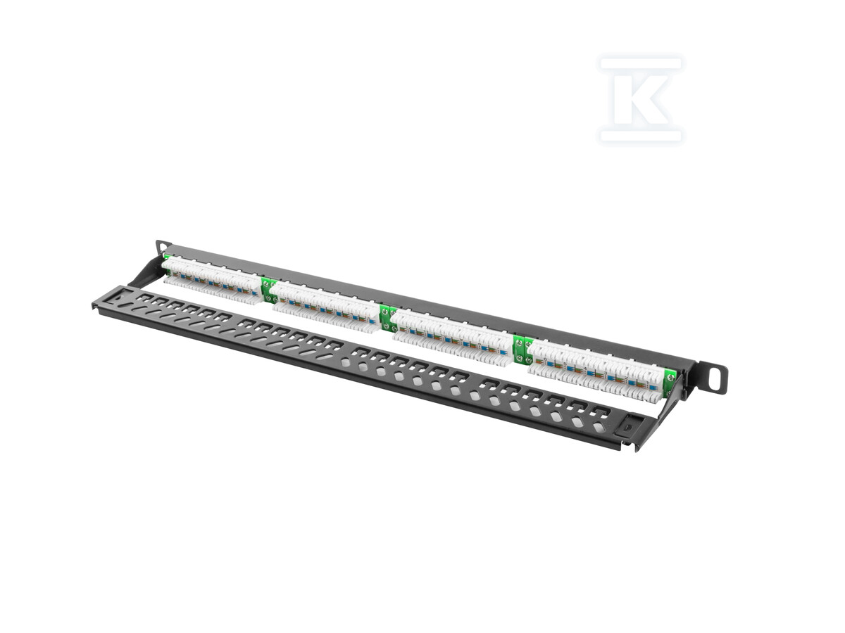 Patch panel 24 порти 0.5U 19" кат. 6 FTP з організатором кабелів екранований чорний PPS6-0024-B
