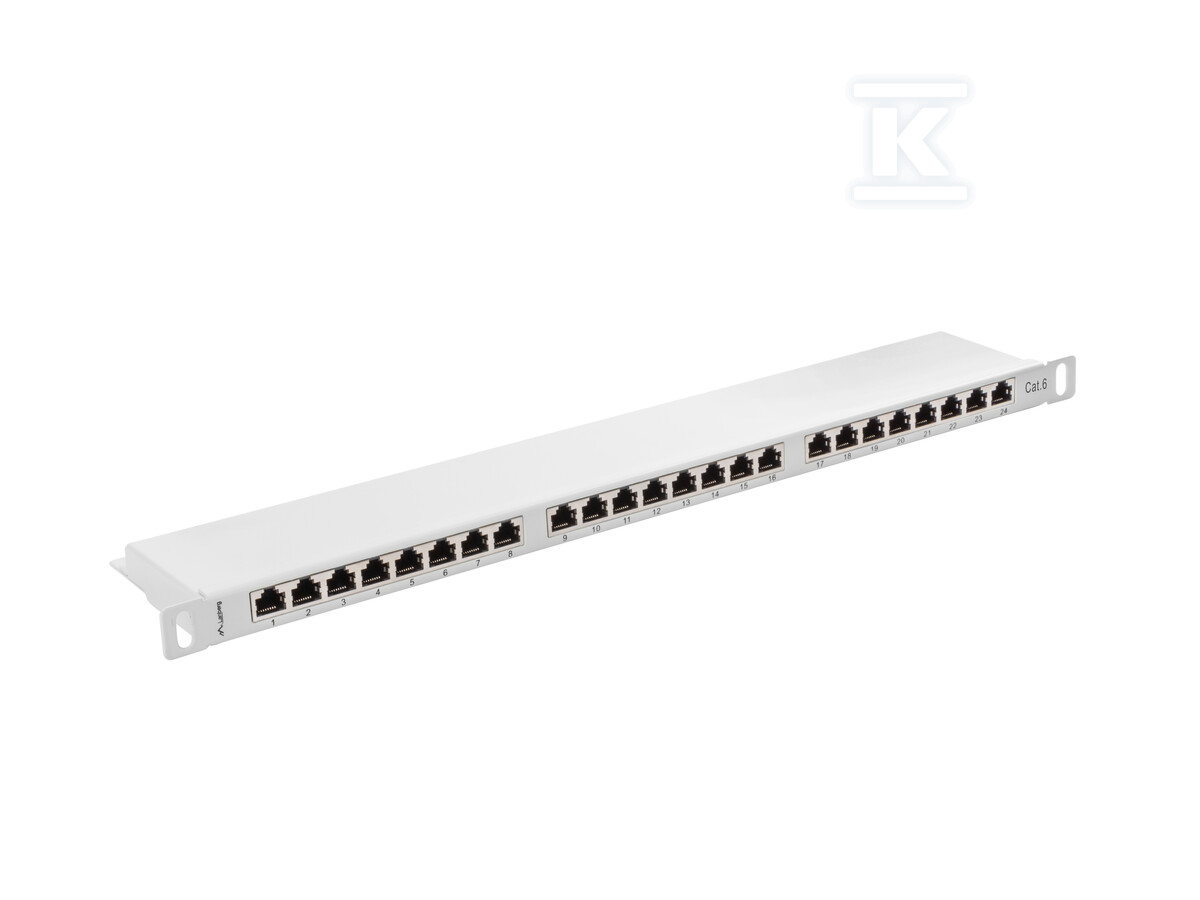 Patch panel 24 порти 0.5U 19" кат. 6 FTP з організатором кабелів екранований сірий PPS6-0024-S