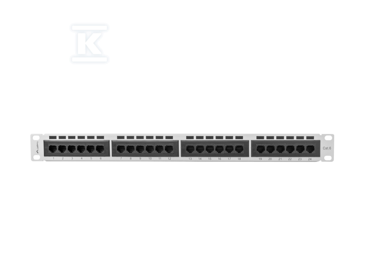 Цей 24-портовий патч-панель кат. 6 UTP в корпусі 1U, призначений для монтажу в шафах rack 19", є ключовим елементом ефективної мережевої інфраструктури. Розроблений як для основних, так і для проміжних пунктів розподілу, він дозволяє впорядковано та надійно з'єднувати кабелі крученої пари. Це пасивний елемент структурованої кабельної системи, який полегшує управління мережею та забезпечує її стабільну роботу.