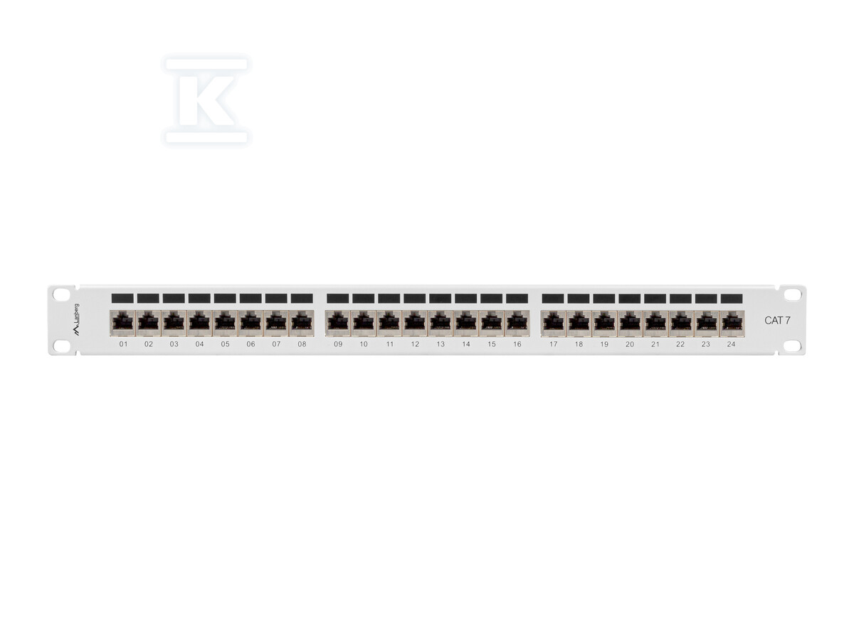 Patch panel 24 порти 1U 19" кат. 7 FTP з організатором кабелів, екранований, сірий PPS7-1024-S