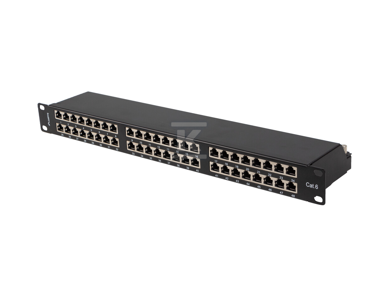 Patch panel 48 портів 1U 19" кат. 6 FTP з організатором кабелів, екранований, чорний PPS6-1048-B