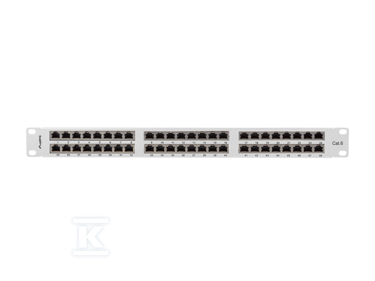 Patch panel 48 портів 1U 19" кат. 6 FTP з організатором кабелів, екранований, сірий PPS6-1048-S