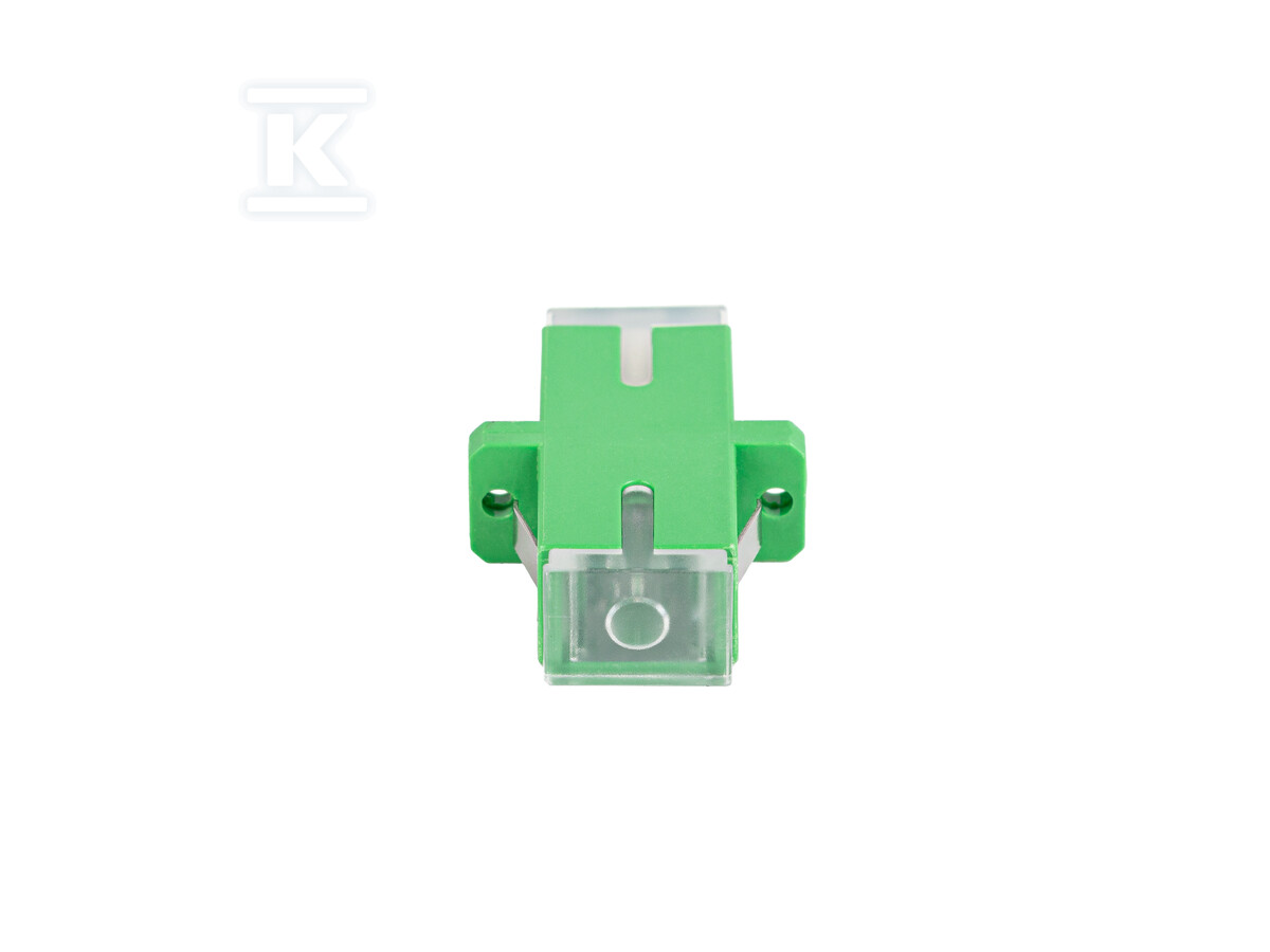 Виготовлений з високоякісного пластику, адаптер характеризується міцною конструкцією з фланцем (фланцями), що дозволяє монтаж за допомогою гвинтів. Прецизійна керамічна втулка забезпечує низьке загасання та повторюваність параметрів з'єднання. Завдяки цьому з'єднання стабільні та ефективні, що перекладається на високу якість передачі даних. Адаптер сумісний з одномодовими волокнами діаметром 9/125 µm та ферами діаметром 2.5 mm.