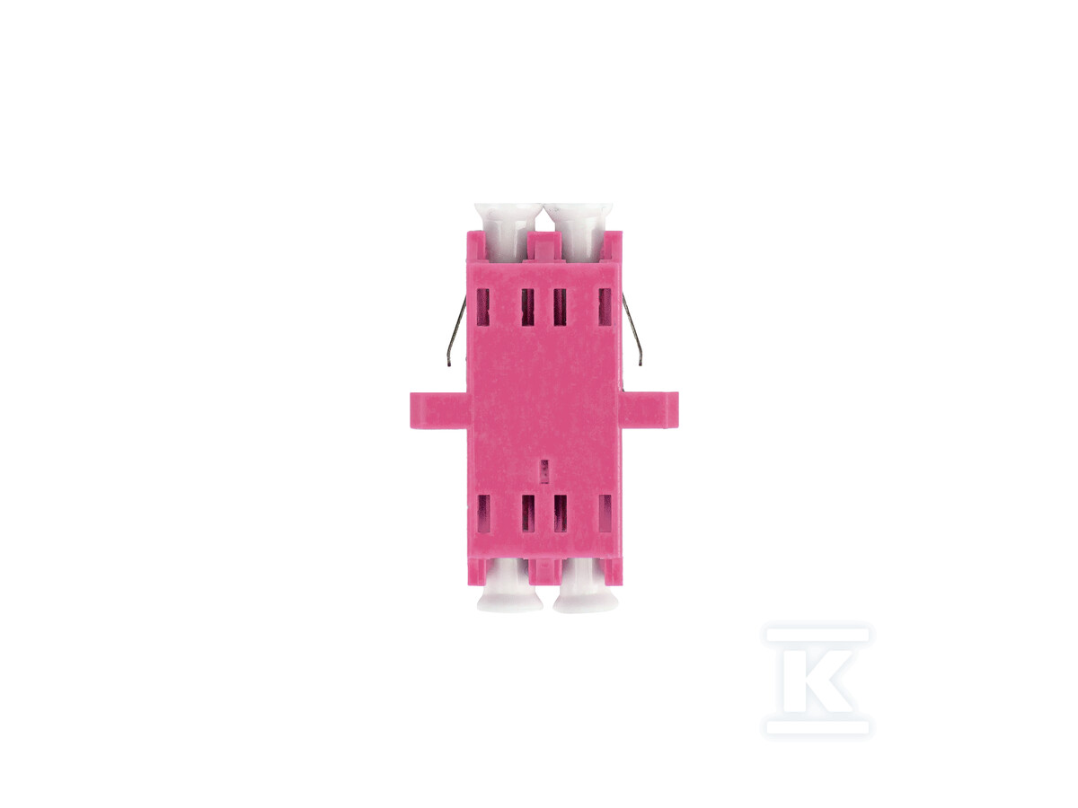 Адаптер сумісний зі стандартом LC, що забезпечує широку сумісність з різними пристроями та кабелями оптоволоконними. Його фіолетовий колір полегшує ідентифікацію в оптоволоконній інсталяції. Додана біла заглушка захищає порти від забруднення та пошкодження під час простоїв або обслуговування мережі.