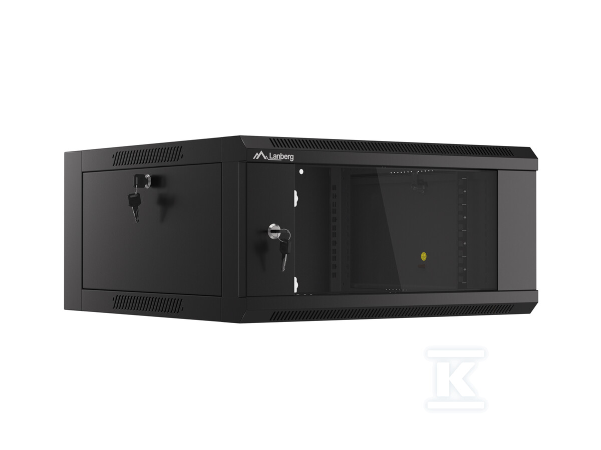 Додатково, шафа оснащена загартованими скляними дверцятами із замком, що забезпечує безпеку обладнання та легкий огляд його стану. Бічні кришки, виготовлені з міцної сталі, додатково захищають внутрішній простір від несанкціонованого доступу. Можливість монтажу шафи на стіну за допомогою доданої монтажної рейки та магнітного рівня полегшує точне встановлення та стабільне кріплення.