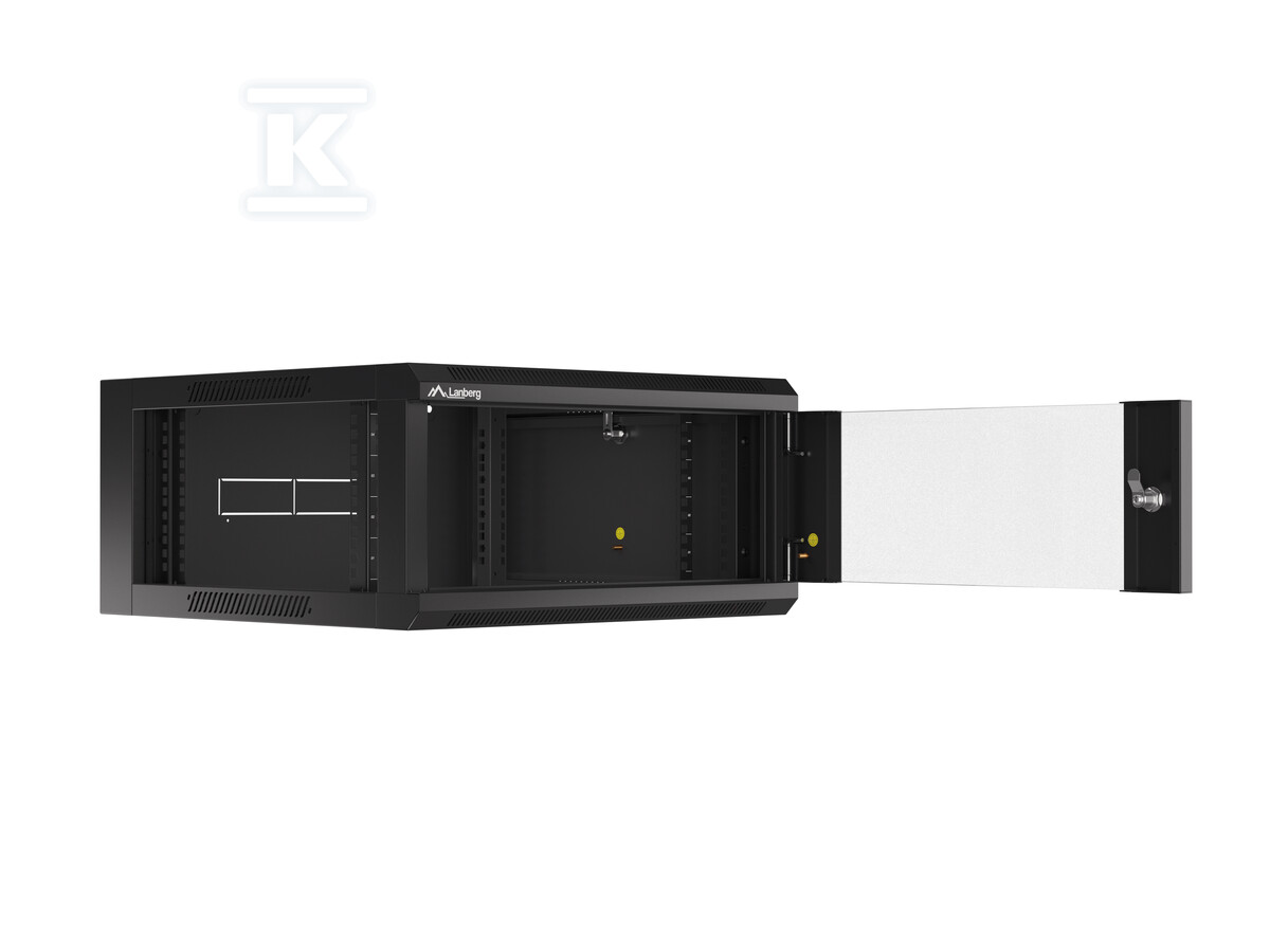 Шафа інсталяційна RACK настінна 19" 4U 600 чорна скляні двері (зібрана) WAFA-5604-10B