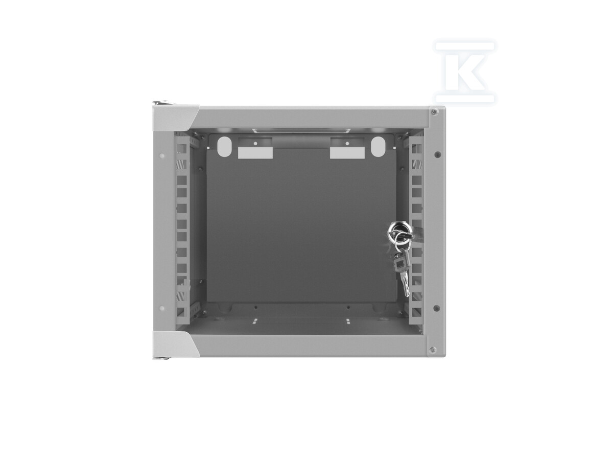 Передні скляні двері з можливістю відкриття на 180 градусів забезпечують легкий доступ до обладнання, а водночас захищають його від пилу (клас герметичності IP20) та несанкціонованого доступу – шафа оснащена замком. Отвори вентиляції на верхній та нижній частинах корпусу забезпечують ефективну циркуляцію повітря, запобігаючи перегріву обладнання. Шафа має 2 монтажні шини, що дозволяють гнучко розміщувати обладнання всередині корпусу. Максимальне статичне навантаження становить 20 кг. Відповідність нормам ANSI/EIA RS-310-D, DIN 41491/PART 1, DIN 41494/PART 7 та IEC297-2:1982 гарантує сумісність з більшістю стандартних мережевих пристроїв.