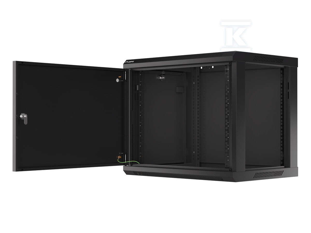 Завдяки продуманій конструкції, шафа легко монтується – як для професіоналів, так і для людей без досвіду в таких інсталяціях. У комплекті є всі необхідні монтажні елементи, включаючи гвинти M6, монтажні кронштейни та бічні замки. Передні двері оснащені замком, що забезпечує додаткову безпеку збереженого обладнання. Вентиляційні отвори забезпечують правильну циркуляцію повітря, запобігаючи перегріву пристроїв. Клас захисту IP20 забезпечує базовий захист від твердих тіл розміром понад 12,5 мм.