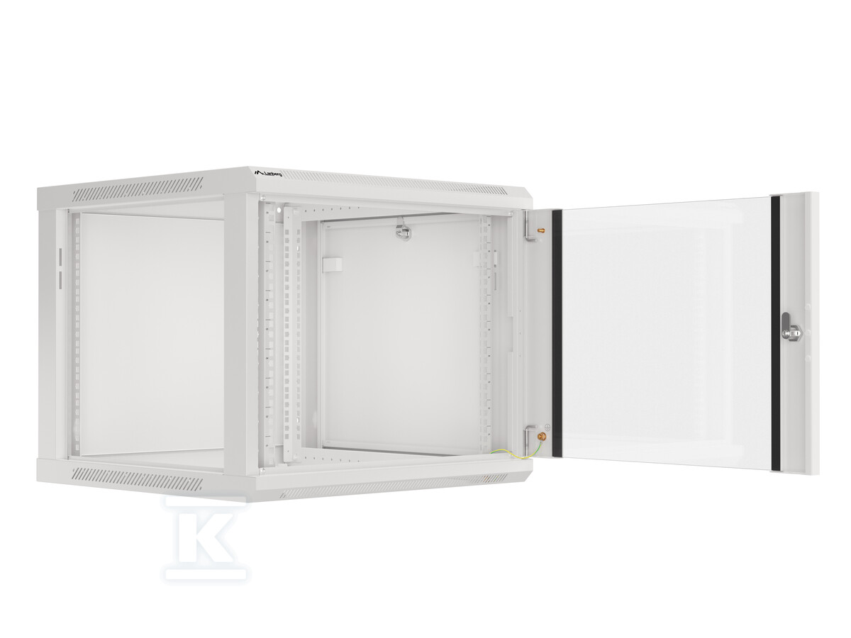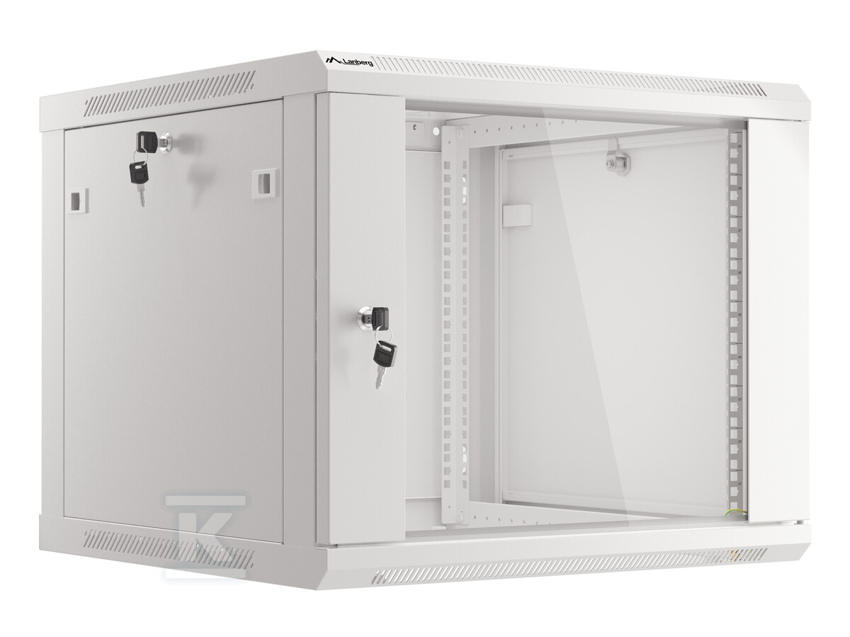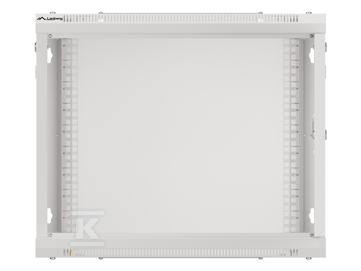 Підвісна шафа Lanberg розроблена з урахуванням легкості встановлення. Завдяки конструкції "flat pack" транспортування є простішим, а сам монтаж не потребує спеціальних інструментів. У комплекті є всі необхідні аксесуари: гвинти M6, монтажні кронштейни, бічні замки та кабель заземлення. Міцна сталева конструкція забезпечує стабільність і довговічність, а порошкове фарбування в сірому кольорі RAL7035 надає їй естетичний вигляд. Шафа має вентиляційні отвори у верхній панелі, що забезпечує належний потік повітря та охолодження обладнання. Можливість обертання дверей на 180° полегшує доступ до встановленого обладнання.