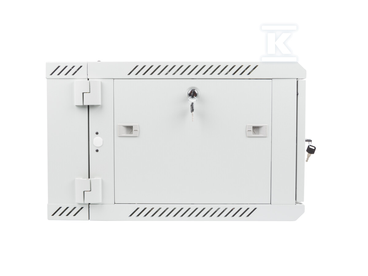 У комплекті також є вентиляційні отвори в стельовій панелі, які забезпечують ефективний потік повітря та охолодження обладнання. Завдяки цьому ви уникнете перегріву пристроїв навіть при інтенсивній експлуатації. Шафа сумісна зі стандартом 19", що дозволяє монтувати широкий спектр мережевого обладнання. У комплекті також є гвинти M6 для монтажу обладнання та елементи заземлення для забезпечення безпеки.