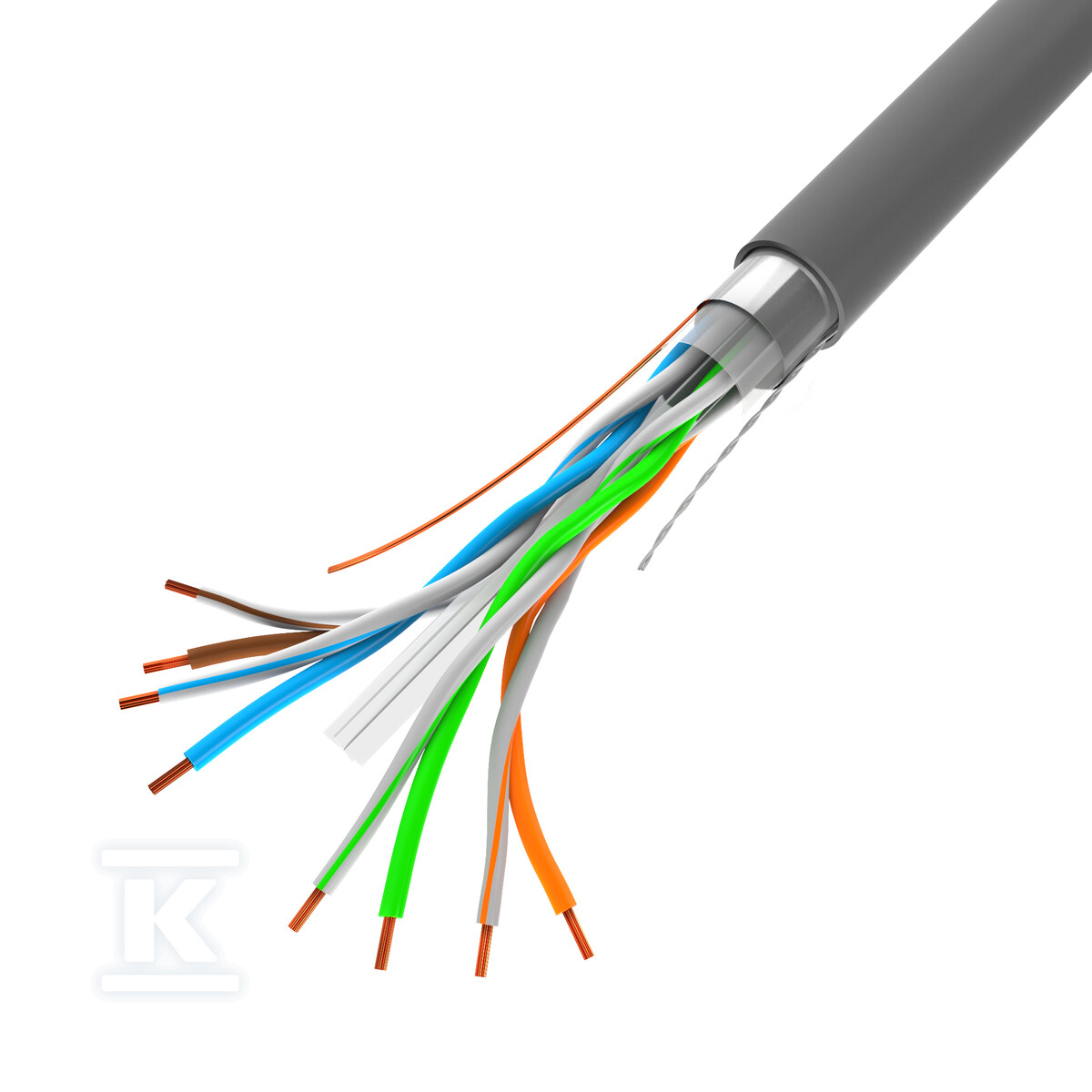 Кабель характеризується міцною конструкцією з екрануванням F/UTP (фольга навколо пари проводів), яке мінімізує електромагнітні перешкоди та забезпечує стабільну передачу даних навіть у середовищах з великою інтенсивністю перешкод. Жила, виготовлені з міді діаметром 0.57 мм (AWG 23) забезпечують добру електропровідність. Ізоляція HDPE та зовнішня оболонка PVC товщиною 0.55 мм захищають кабель від механічних пошкоджень та впливу зовнішніх факторів.