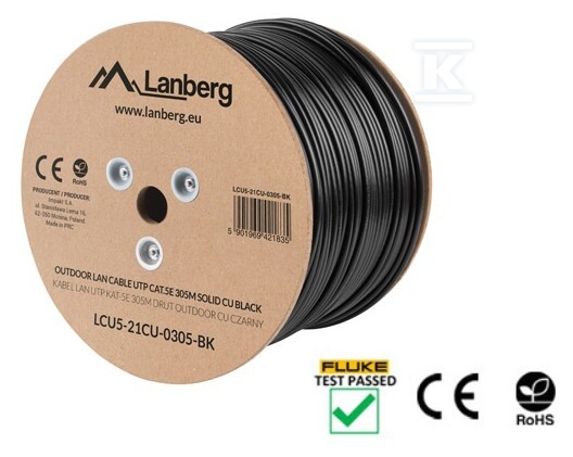 Кабель LAN UTP кат. 5E 305м дріт outdoor CU чорний fluke passed LCU5-21CU-0305-BK