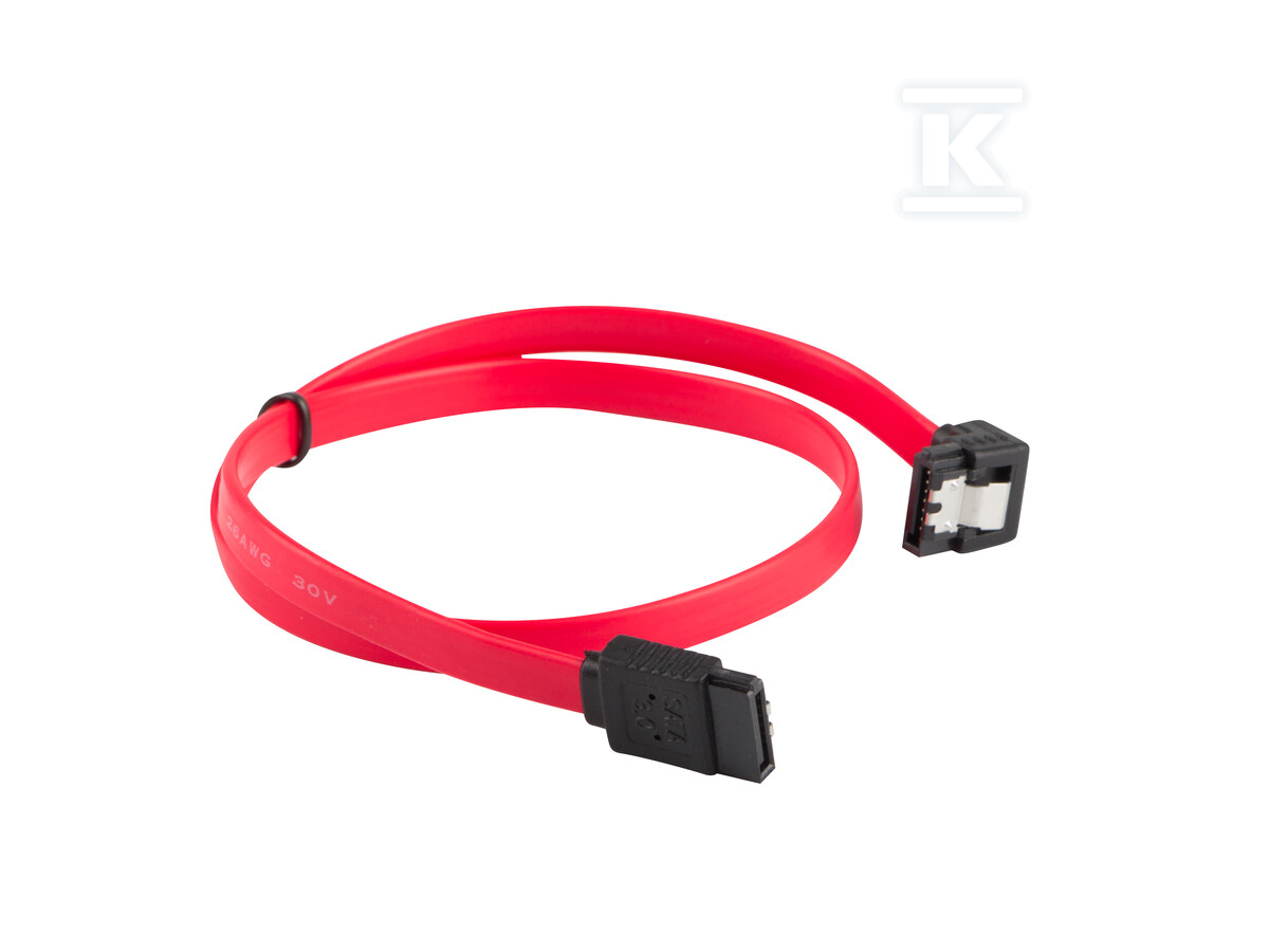Кабель SATA DATA III (6Gb/s) F/F 50 см із металевими фіксаторами кутовий низ/прямий червоний CA-SASA-13CU-0050-R