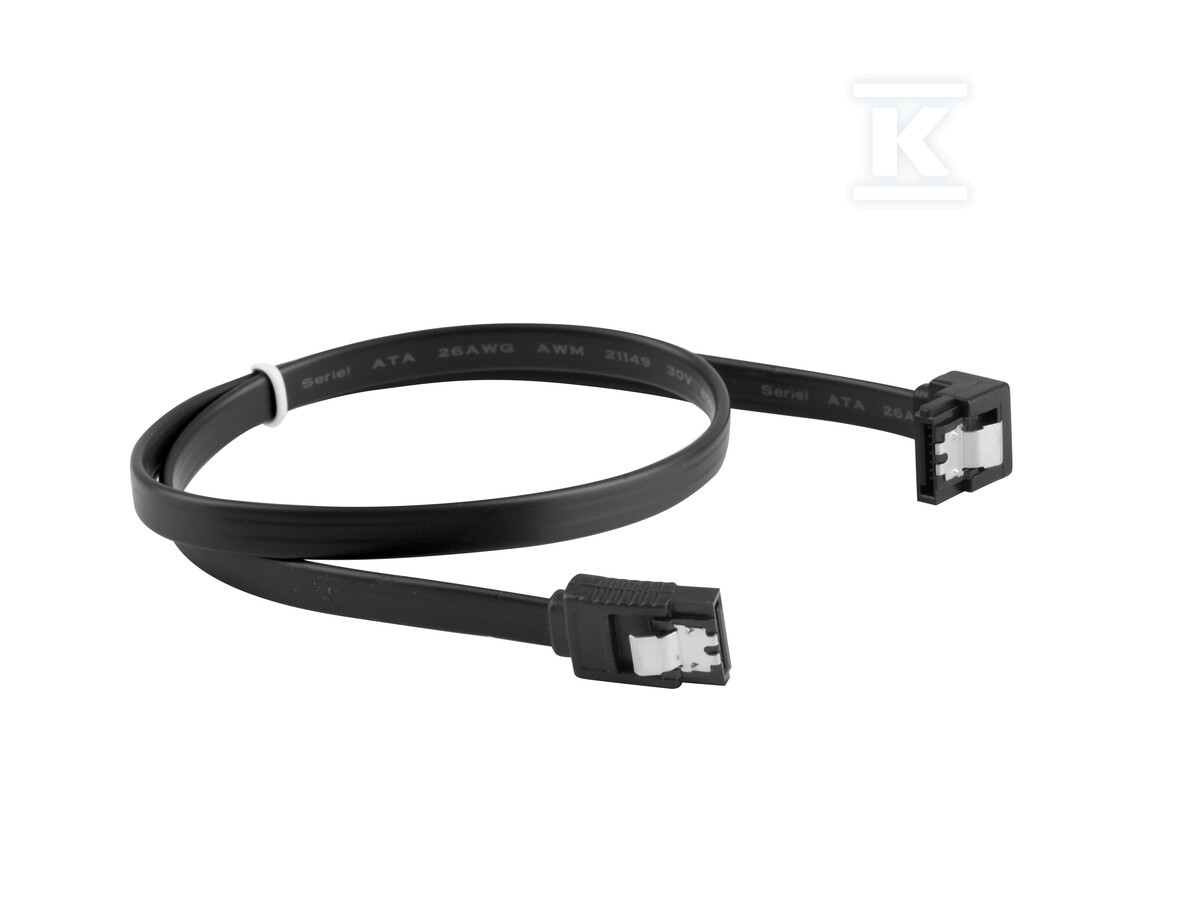 Кабель SATA DATA III (6Gb/s) M/M 50 см з металевими фіксаторами кутовий чорний CA-SASA-13CU-0050-BK