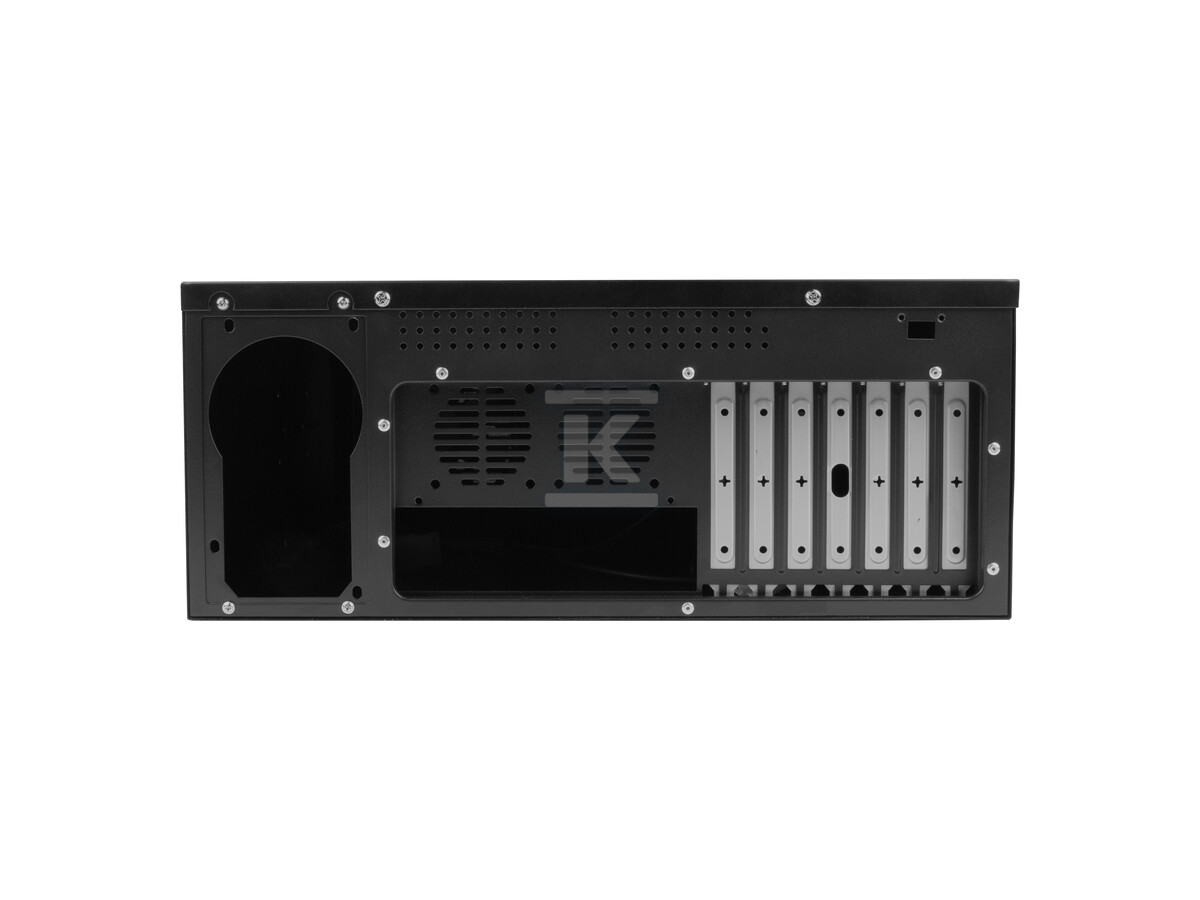 На передній панелі розташовані порти USB 2.0, кнопки живлення і скидання, а також світлодіоди, що інформують про стан живлення та активність жорсткого диска. Сім слотів для карт розширення дозволяють додавати додаткові контролери, мережеві карти або інші модулі, що розширюють функціональність сервера. Змінний пиловий фільтр захищає внутрішню частину шафи від забруднень, що подовжує термін служби компонентів і забезпечує стабільну роботу системи. Доступна робоча висота 155 мм забезпечує сумісність з більшістю популярних кулерів процесора. Компактні розміри (350 x 430 x 177 мм) та формат 4U роблять шафу ідеальною для використання в центрах обробки даних та невеликих серверних кімнатах.