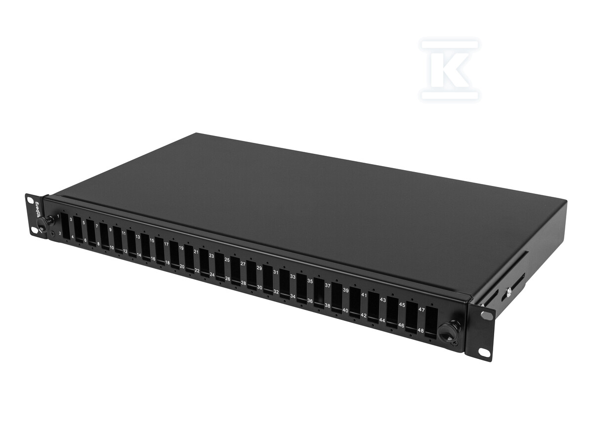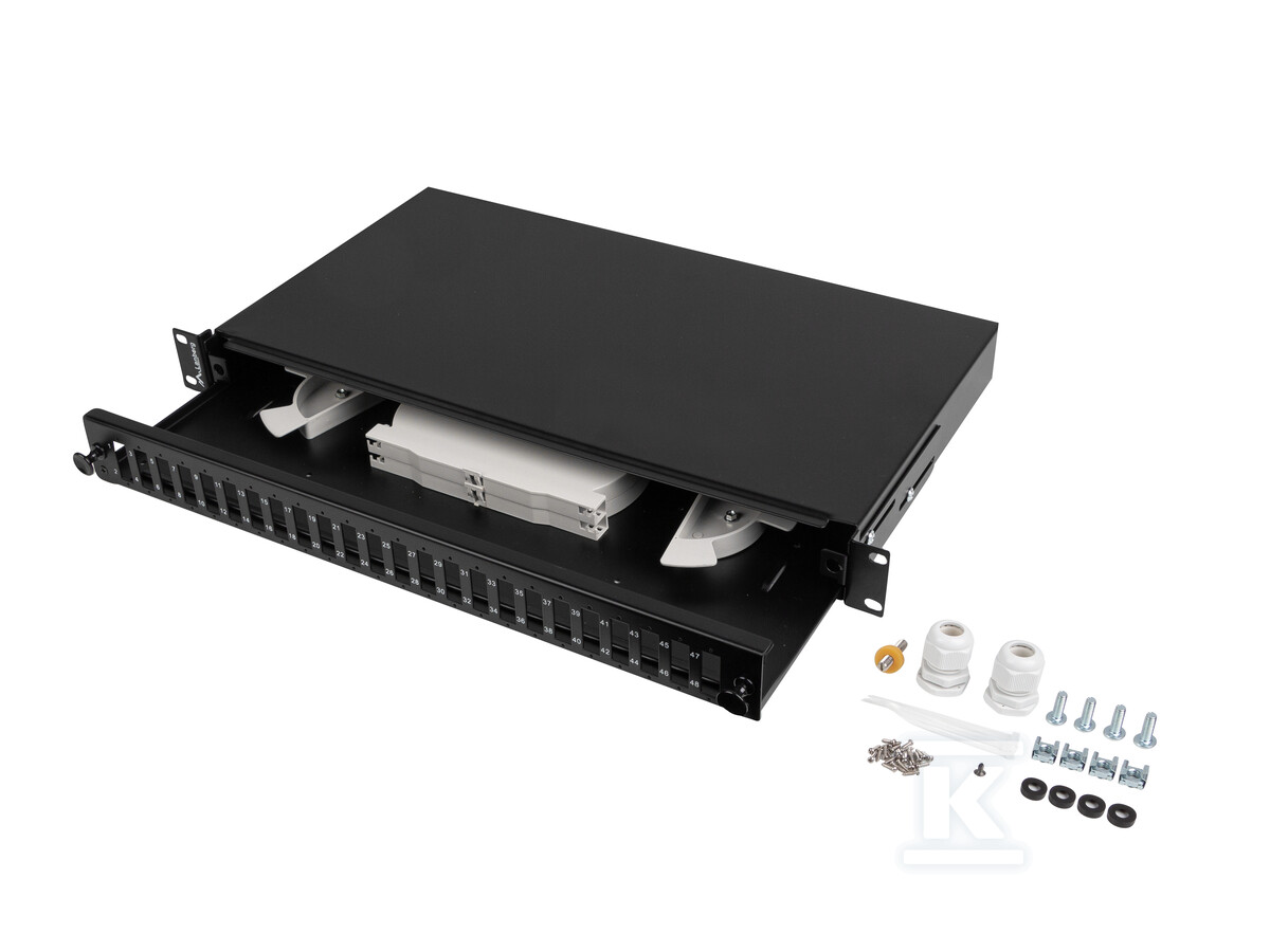 Оптична патч-панель 24xSC duplex / 24xLC quad RACK 19" 1U чорна + аксесуари FOP1-24SD-LQB