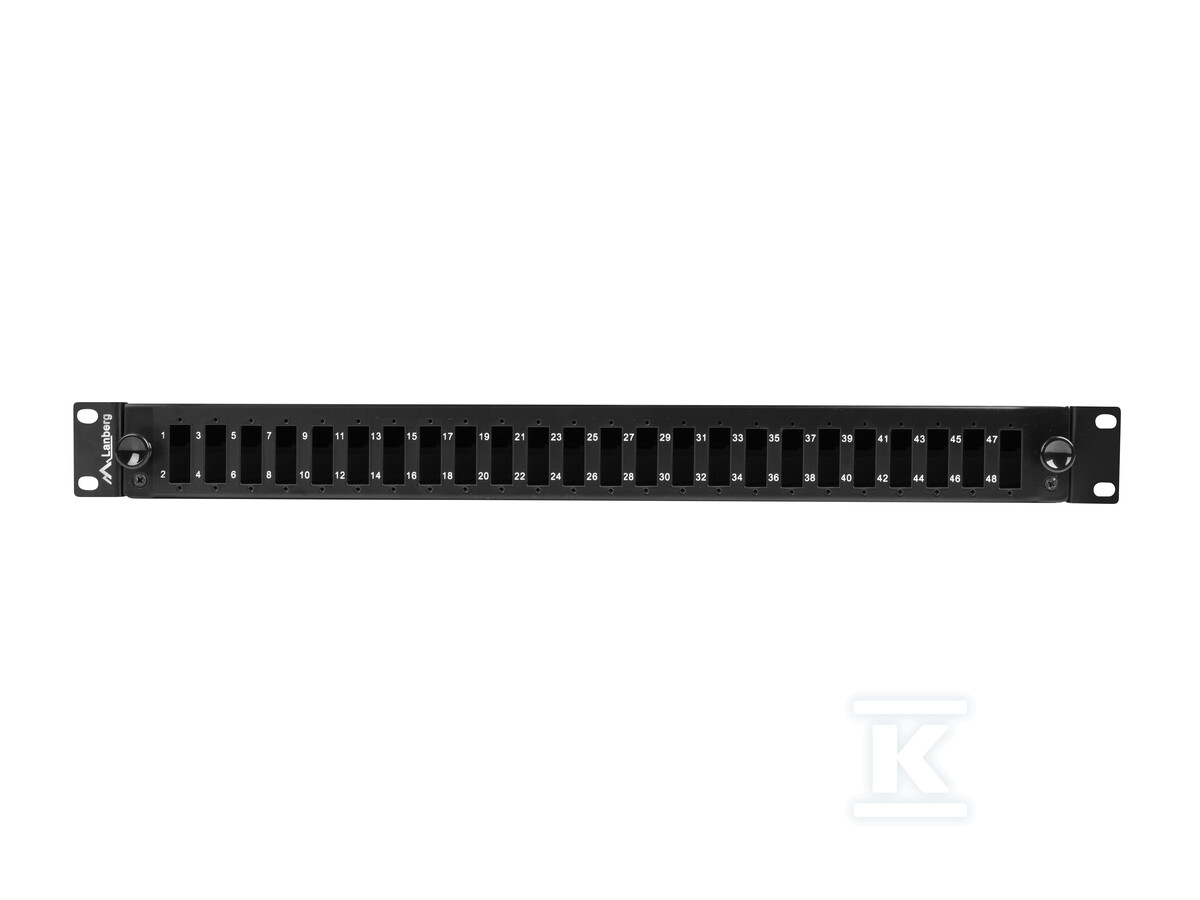 Виготовлений з міцного сталевого листа з порошковим покриттям, патч-панель забезпечує захист делікатних волокон. Передній панель з нумерацією портів полегшує ідентифікацію з'єднань, а отвори для гвинтів дозволяють стабільно закріпити адаптери. Регульовані кріплення для стійки дозволяють адаптувати до різних конфігурацій телекомунікаційних шаф. Задня панель оснащена п'ятьма кабелевими вводами, що дозволяє вільно вводити та виводити кабелі. У комплекті є монтажні аксесуари – кабельні вводи, стяжки та гвинти – які полегшують встановлення. Два доданих лотки для сплайсів дозволяють організувати волоконнооптичні з'єднання.