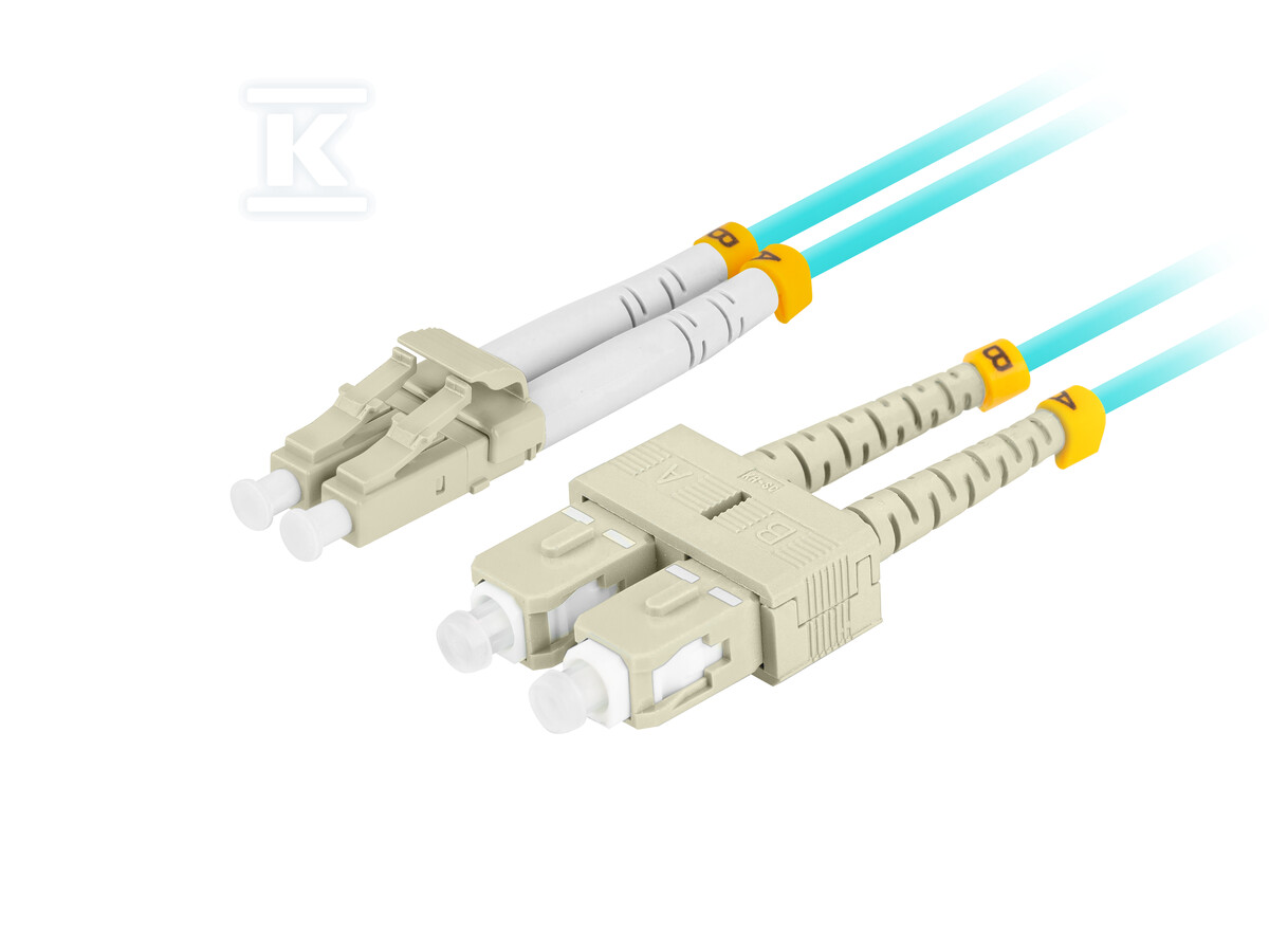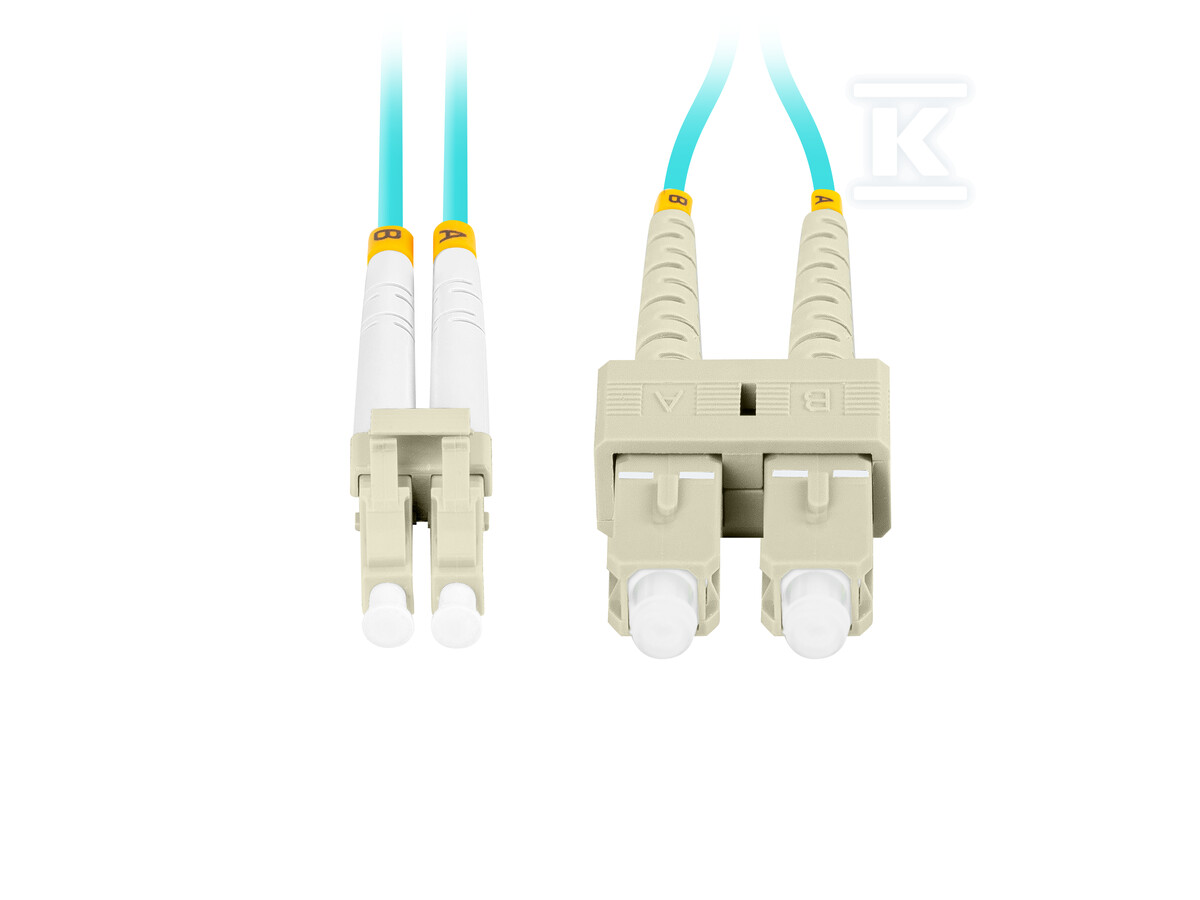 Оптичний патч-корд MM LC/UPC-SC/UPC дуплекс 3.0 mm OM3 50/125 LSZH 0,5м аква FO-LUSU-MD31-0005-TQ
