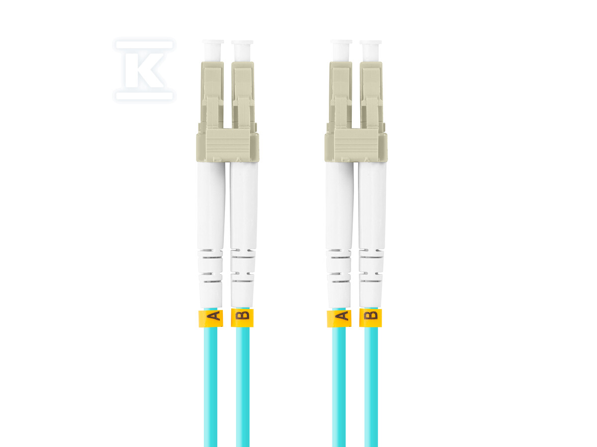 Патч-корд оснащений з'ємами LC/UPC, які характеризуються високою точністю та низькими втратами вставки (нижче 0.20 dB). Стандарт полірування UPC забезпечує оптимальну якість оптичного з'єднання. Волоконно OM3 з діаметром 50/125 µm ідеально підходить для передачі даних на короткі та середні відстані, а його характеристики дозволяють ефективно використовувати джерела світла з довжиною хвилі 850 нм.