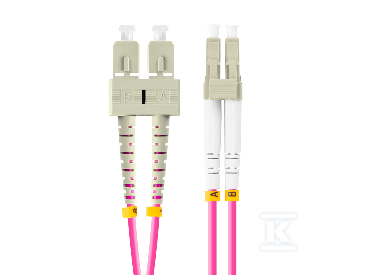 Оптичний патчкорд MM LC/UPC-SC/UPC дуплекс 3.0 mm OM4 50/125 LSZH 1м фіолетовий FO-LUSU-MD41-0010-VT