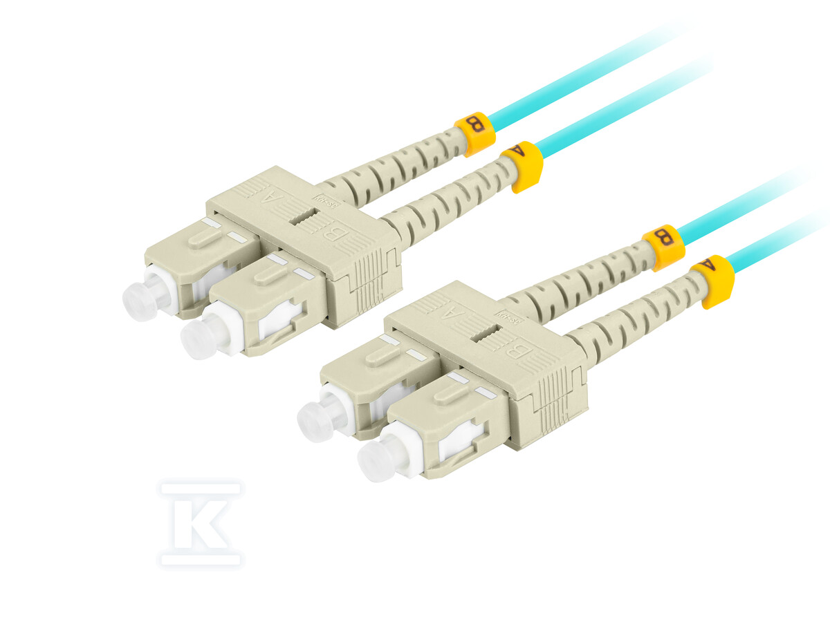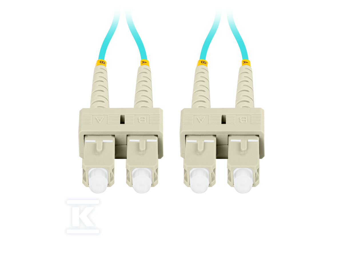 - Роз'єми, виготовлені за стандартом SC/UPC, забезпечують сумісність з більшістю мережевих пристроїв. Використовує волокно OM3, призначене для передачі даних на короткі та середні відстані, пропонуючи високу пропускну здатність. Duplex конструкція дозволяє одночасну передачу та прийом даних завдяки двом волокнам в одному кабелі. Характеризується вставними втратами нижче 0.20 dB, що гарантує мінімальні втрати сигналу під час передачі та відбивною здатністю вище 30 dB, що зменшує перешкоди, спричинені відбиттям сигналу.