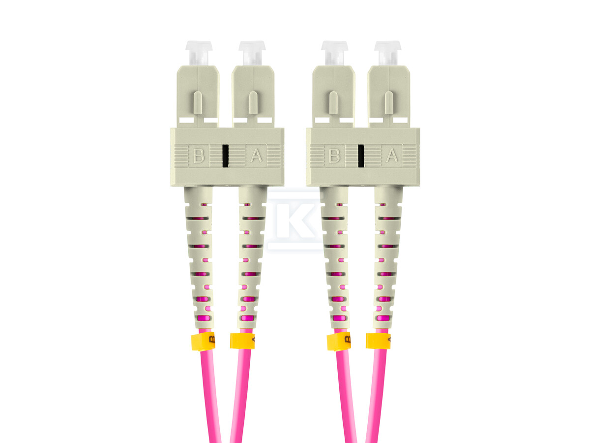 Цей фіолетовий патчкорд з оптоволокна є надійним рішенням для з'єднань у мережах, де важлива висока пропускна здатність і стабільність сигналу. Провід розроблений з урахуванням вимогливих додатків, таких як передача даних у центрах обробки даних, мережах LAN або з'єднаннях між активними пристроями. Дуплексна конструкція забезпечує одночасну передачу та прийом даних, що підвищує ефективність з'єднання.