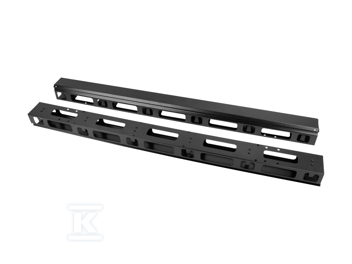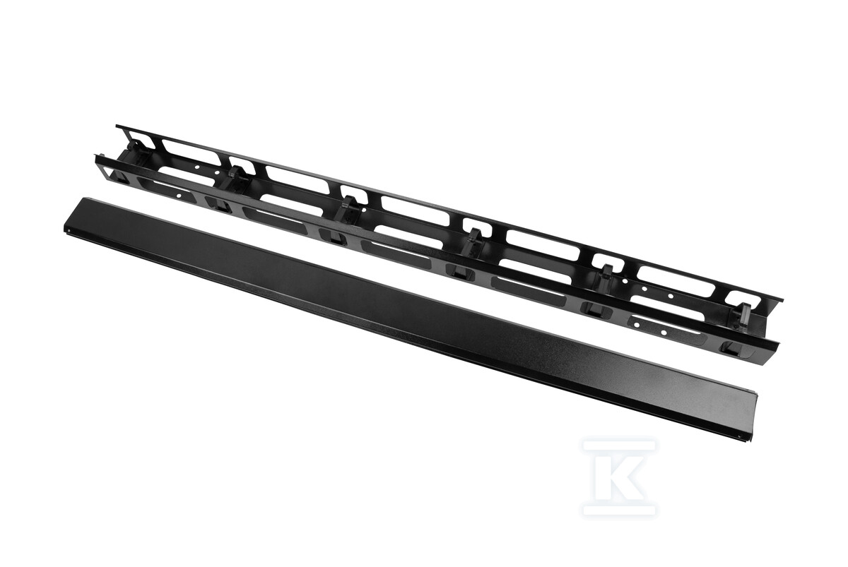 Органайзери виготовлені з міцної сталі, що гарантує їх довговічність навіть при інтенсивному використанні. Чорний колір непомітно вписується в оточення шафи rack. Призначені для монтажу в шафах висотою 22U, вони ефективно використовують доступний простір. Завдяки їм кабелі проводяться впорядкованим способом, що мінімізує ризик їх пошкодження та полегшує ідентифікацію. Ширина 94 мм дозволяє вільно проводити більшість типових телеінформаційних та силових кабелів.