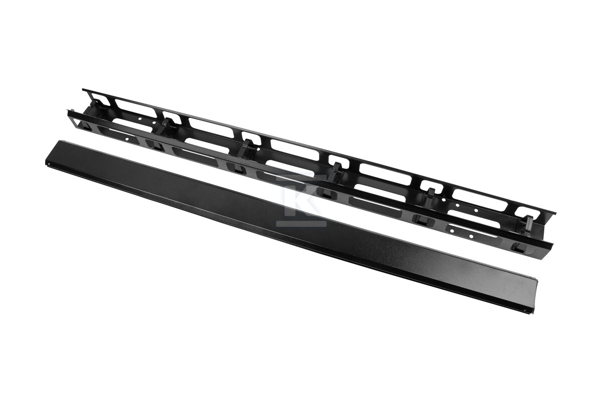 Виготовлені зі сталі органайзери характеризуються міцністю та довговічністю. Їх чорний колір забезпечує естетичний вигляд і добре поєднується з більшістю серверних шаф. Монтаж простий та інтуїтивно зрозумілий – органайзери кріпляться безпосередньо всередині стійки, що дозволяє швидко та без проблем впорядкувати дроти. У комплекті є два органайзери, що дозволяє комплексно управляти кабелями в одній шафі. Розміри одного органайзера: 1211.25 мм довжини, 94 мм ширини та 82 мм глибини, а вага – 4.47 кг (весь набір).