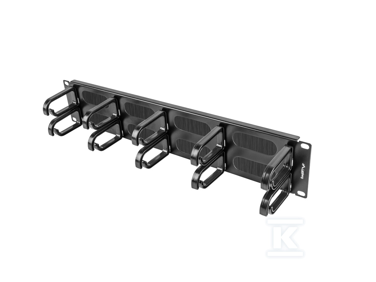 Органайзер кабелів 19" 2U з 10 тримачами, панель щоткована, тип B, чорний AK-1204-B