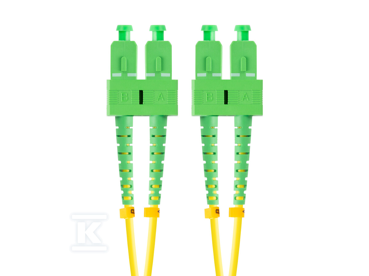 Цей патч-корд знайде застосування в різноманітних мережевих середовищах – від центрів обробки даних і серверних, через телекомунікаційні мережі, до промислових інсталяцій. Він сумісний з пристроями, обладнаними з'єднувачами SC/APC і зарекомендує себе як у нових інсталяціях, так і під час модернізації існуючих мереж. Діапазон робочих температур від -40°C до 85°C дозволяє його використовувати навіть у складних умовах навколишнього середовища. Жовтий колір полегшує ідентифікацію кабелю в оптичній інсталяції.