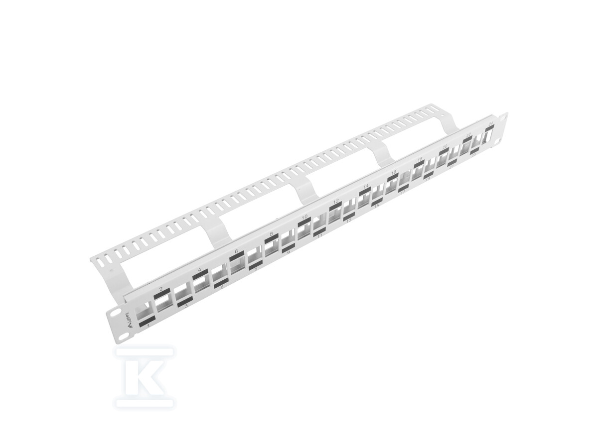 Панель патчів пуста 24 порти 1U 19" чергуюча з організатором для модулів Keystone сіра PPKS-1224-S