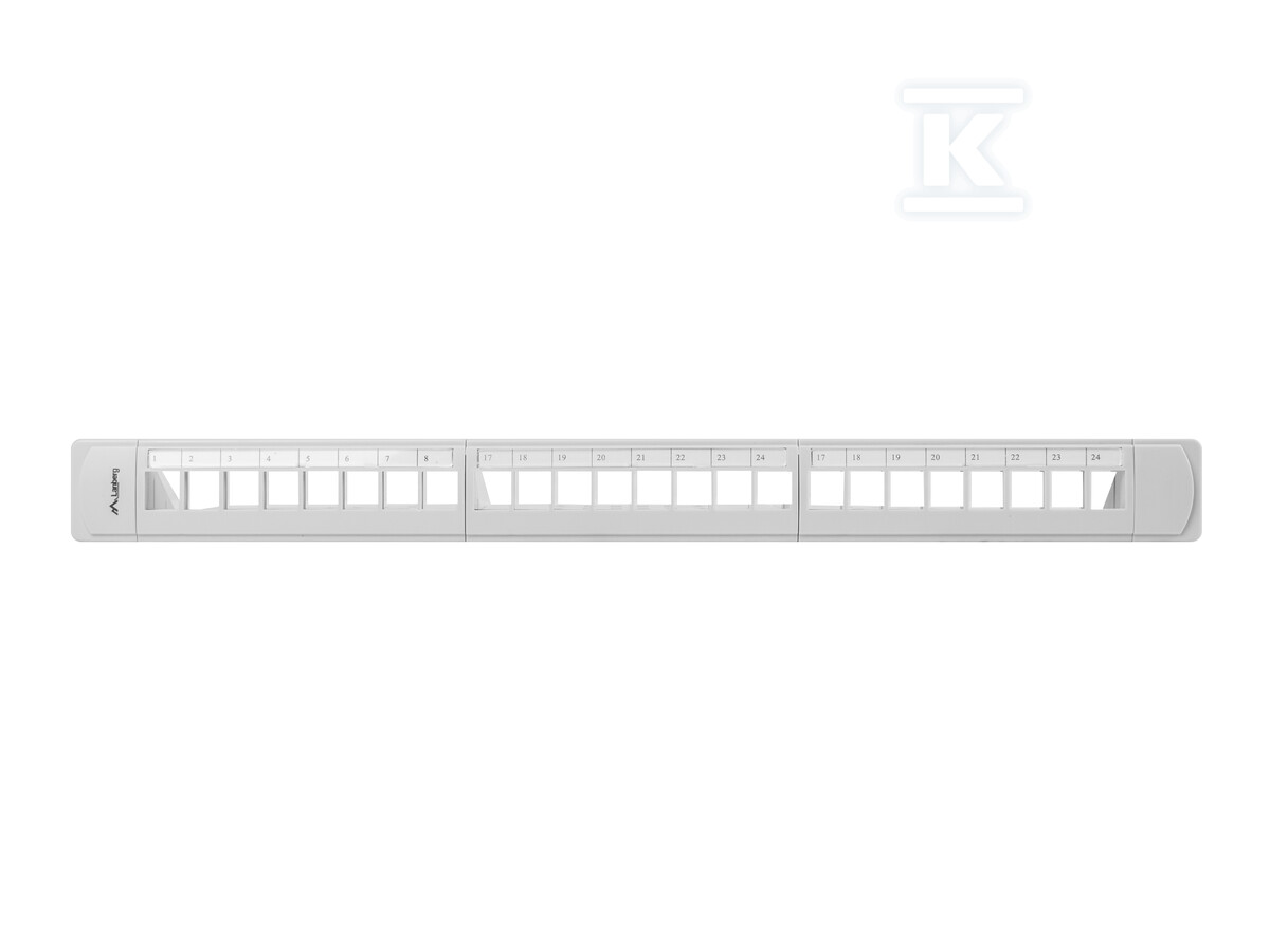 Панель патчів пуста 24 порти 1U 19" з органайзером для модулів Keystone сірий PPKS-1124-S