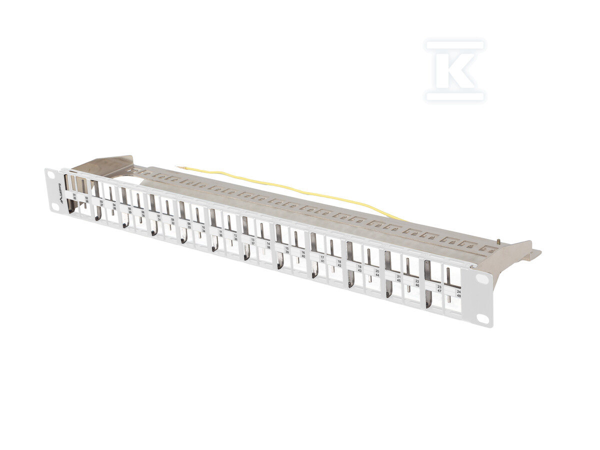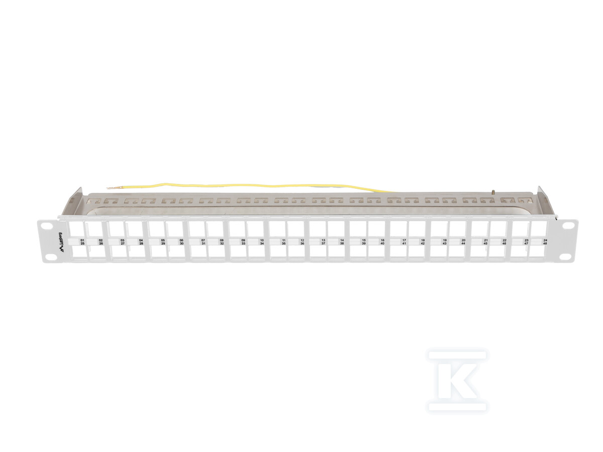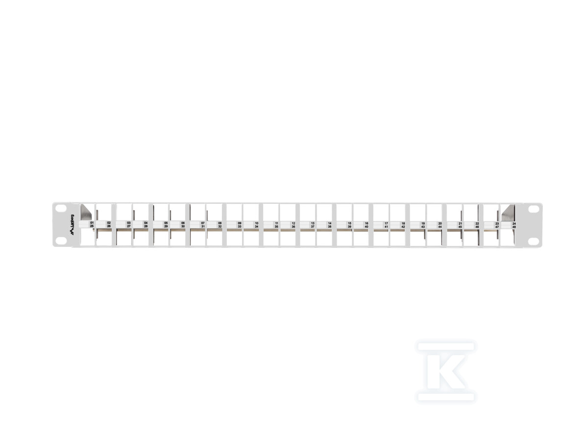 Ця пуста патч-панель 19" є ключовим елементом в організації та управлінні мережевим кабелем. Призначена для монтажу в шафи rack, вона пропонує 48 портів, які можна довільно конфігурувати за допомогою модулів keystone – RJ45, RJ11, RJ12, а також аудіо-відео роз'ємів (HDMI, USB, F, BNC). Завдяки цьому ви отримуєте гнучкість і можливість адаптації панелі до специфічних потреб вашої інсталяції.