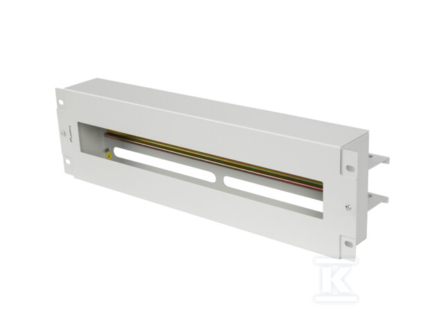 Панель має стандартну висоту 3U та ширину 19", що забезпечує сумісність з більшістю шаф rack, доступних на ринку. Ключовим елементом є шина DIN TS-35, що дозволяє монтувати запобіжники струмові та модулі автоматики промислової. Завдяки цьому можна легко захистити кола від перевантаження та короткого замикання. Корпус, виготовлений зі сталевого листа товщиною 1,5 мм, пофарбованого порошковою фарбою, забезпечує міцність конструкції. Додатково, панель оснащена захисним кожухом, органайзером кабелів та чотирма кабелепроводами ззаду корпусу, що полегшує прокладання дротів та підтримання порядку. З'єднання заземлення підвищує безпеку використання.